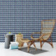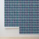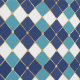 Dit feestelijke behang is voorzien van argyle stijl diamanten in licht en donkerblauw patroon met gouden lijn accenten.