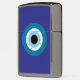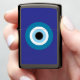 Modern blauw-wit slecht oog ontwerp op Zippo aansteker
