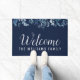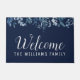 welkome typografie met een familienaam en een waterverf blauw blad. U kunt de kleuren en tekst op deze mat bewerken