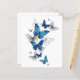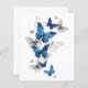 Vliegende Blauwe Butterflies morpho en witte vlinders op een lichte abstracte achtergrond. Morpho. Ontwerp met blauwe vlinders morpho.