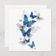 Vliegende Blauwe Butterflies morpho en witte vlinders op een lichte abstracte achtergrond. Morpho. Ontwerp met blauwe vlinders morpho.