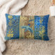 Elegant kussen in rijke blauwen, goud en taupes, met kenmerken en vogels. Ideaal voor woonkamers, ingangzalen, slaapkamers en nog veel meer.