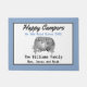 Fun camper-ontwerp. Baby blauw en wit met een grijze rand. Pas het aan met uw namen en de datum waarop u met uw kampeerprogramma's bent begonnen. Koop het hele Collectie Happy Campers voor een retro RVing-ervaring.