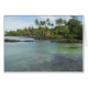 transparante waterlagune op onbedorven Hawaiiaanse kust met palmbomen. Dit is Keaukaha, van het IZ-nummer Koleohano. Hier zijn enkele woorden: Kaleohano, 'o Kaleohano kou inoa Kaleohano, Kaleohano (is) jouw naam Ku'u 'âina, ku'u kulâiwi, een huls die ik maak... mijn land, mijn eigen land, en het zee Kaulana'o Keaukaha. Bekende Keaukaha.
