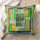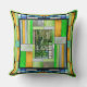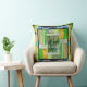 20 x 20 inch gooien kussen met een afbeelding van een digitaal gekleurd glaswerk met een blauw haronmotief. De achterkant heeft een afbeelding groen gekleurd glas. Zie het volledige collectie van dit & van de Pijl in de sectie van het Huis.