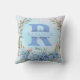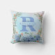bloemig, monogram kussen - mooie tinten van blauwe hortensia's omringen je initiaal en naam! Hetzelfde ontwerp is zowel aan de voor- als achterkant. Zorg ervoor dat u uw maat en stof kiest voordat u deze in uw winkelwagen plaatst.