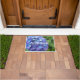 Decoratief welkomstmodel met een foto-afbeelding van blauwe Mophead Hydrangea-bloempitten en groene loof. Een mooi, bloemetjesontwerp! Gebruik binnenshuis of in overdekte toegangsgebieden. Selecteer uw slaapgrootte.