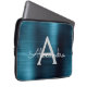 Blue Metallic Modern Chic Stainless Steel Monogram Laptop Sleeve