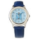 Onze Monogrammed Moose voor de Letter M is gemaakt in schattige blauwe prints. Geef je jongetje een schattig, gepersonaliseerd horloge dat ze hun eigen kunnen bellen en leren hoe ze tijd moeten vertellen!