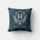 Blue Plaid Winter Monogram Crest Initiaal Kussen