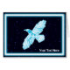 Een eenvoudig, gloeiend, blauw-en-wit lijnafbeelding van een Raven (Corvus corax) op een stervormig achtergrondafbeelding. Voeg je eigen tekst toe.