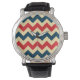 Blue Red Chevron Zigzap Pattern Horloge
