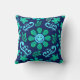 Blue Retro Style Floral and Sun Symbol Pattern Kussen