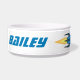 Blue Retro Rocket Ship Personalized Pet Bowl. Pas het aan met de naam van uw huisdier, familienaam of andere tekst. Alle formuleringen kunnen worden aangepast of verwijderd. Ideaal voor een hond die graag snel rennen. Het ontwerp kenmerkt een patroon van het cartoon rocketship met de stijlvolle aangepaste tekst van de typografische doopvont en initiaal in een cirkel. Eenvoudige, gewaagde en moderne toevoeging aan home decor van het ruimtethema. Cute en leuke cadeauidee voor een hondenliefhebber, vooral als je geïnteresseerd bent in ruimteschepen, planeten, ruimtevaartwetenschap, astrofysica, aeronautische techniek, sterrenonderzoek, NASA, scifi, robots, astronauten. Verken en dromen groot. Ik hou van je naar de maan en terug.