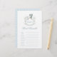 Elegante en verfijnde "Baby word scramble" spel, ontworpen voor een thema baby boy shower. Met een charmante ooievaar met een baby boy in een schattige kam en een baby blauw gingham-patroon aan de achterkant, voegt dit klassieke spel een vleugje tijdloze stijl en plezier toe aan uw evenement. Perfect voor het vermaken van gasten en het creëren van dierbare herinneringen, het is een ideale aanvulling op een lief en preppy baby shower. Antwoorden: 1. luier 2. rammelaar 3. fopspeen 4. formule 5. zwangerschap 7. kinderwagen 8. autostoeltje 9. fles 10. kinderkamer