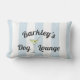 Voeg een vleugje eigenzinnigheid toe aan uw huis met dit lichtblauwe en wit gestreepte lendenkussen gepersonaliseerd met de naam van uw hond, een martini-glas en de tekst "Dog Lounge". Een bijpassend hondenbed, deken en een kom voor huisdieren zijn ook beschikbaar in dit leuke ontwerp.