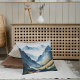 Dit boeiende horizontale gooi kussen cadeaus een adembenemende bergscène, meesterlijk weergegeven in rustgevende tinten blauw en bruin die een gevoel van sereniteit en ontzag oproepen. In het hart van de compositie meandert een kristalheldere stroom sierlijk door de berg, zijn wateren reflecteren de azuurblauwe tint van de hemel, waardoor een harmonieuze mix van kleuren ontstaat die rust uitstraalt. De bergen, afgebeeld in verschillende tinten van tan, stijgen majestueus tegen de achtergrond, hun pieken raken de lucht, wat zowel hun grandeur als de tijdloze schoonheid van de natuur suggereert.