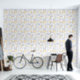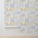 Blue Yellow Mid-Century Abstract Cat Pattern Behang