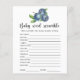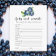 Schattige baby shower uitnodigingskaart met waterverf illustratie van bosbessen. De tekst zegt: "Er komt een beszoete baby aan." Overeenkomende objecten beschikbaar. ANTWOORDEN: VERLANGENS, HUILEN, FLES, NACHTLICHT, SLAAP, KINDERWAGEN, EPIDURAAL, BOER, HOGE STOEL, LUIERTAS, SWADDLE