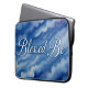 Deze laptophoes is voorzien van een grillige blauw-witte paarse waterverf print van een serene bewolkte lucht met de gebruikelijke Pagan / Witch groet van Blessed Be.