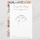 Vrijgezellenfeest Guess de jurk spel papier blad met een waterverf blush roze en verbrande sinaasappel bloemenpatroon op de achterkant.