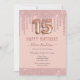 Meisroze diamantdruppels, milleniumroze achtergrond, met fancy scriptnaam typografie. Faux roos Gold 15 ballontekst. Geweldig voor feestelijkheden. Alle tekst kan worden aangepast.