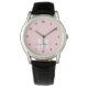 Gepersonaliseerde Monogram Blush Roze en Wit horloge met eenvoudige zwarte cijfers. Dit chique, girly horloge combineert klassieke stijl met een leuke, persoonlijke touch. Het beschikt over een vet wit initiaal op een zacht blozend roze achtergrond (let op: het roze is een gladde, vlakke kleur zonder glinstering), met eenvoudige zwarte cijfers voor eenvoudig lezen. Een delicaat zwart script geeft de naam weer voor een extra aangepast detail, waardoor dit horloge uniek is. Perfect voor alledaagse draag of speciale gelegenheden, dit horloge is een leuk cadeau voor verjaardagen, feestdagen of gewoon omdat. Ideaal voor een studentenvereniging zus, vriend, moeder, dochter, of iedereen die houdt van een pop roze, dit charmante kleurenschema en klassieke ontwerp maken het een speelse maar tijdloze accessoire voor elke outfit.