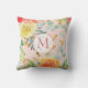 Dit blush roze kussen heeft een waterverf bloemenontwerp met faux glitter en ronde monogram. Personaliseer het met een initiaal.