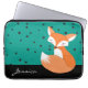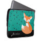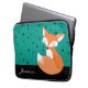 Een schattig blozend houten vossenontwerp over een gevlekt patroon met blauwgroen achtergrond en aangepaste naam. Voer jouw namen in plaats van de voorbeeldnaam in de sjabloon van het ontwerp. Dit computer sleeve is een geweldige keuze voor het beschermen van uw laptop of tablet.