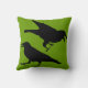 Verscheidene zwarte kraaien versieren deze grote kussen.