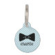 Deze Bow Pet ID Tag is chic en charmant met zijn blauw-witte gestreepte achtergrond die een knipoog geeft naar klassieke stijl. De opvallende zwarte boog stropdas illustratie in het midden voegt een vleugje verfijning toe, wat suggereert dat dit huisdier is helemaal aangekleed voor speciale gelegenheden. De naam van uw huisdier wordt weergegeven in een elegant, curvy lettertype, dat de algemene dappere look aanvult. Dit label is ideaal voor een huisdier die een sfeer van elegantie en charme draagt!
