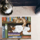 Twee katten slapen op een boekenplank met kattenthemaboeken. Kat liefhebbende enthousiaste boeklezer.