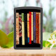 Deze decoratieve aansteker voor zippo's is voorzien van een herhalend ontwerp van kleurrijke boeken. Ze vormen een interessant abstract geometrisch patroon in kleuren van groen, geel, rood, blauw, zwart en roze.