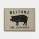 boerderij van varkens, dierenwelzijnsmodel met familienaam of -adres. Douaneplek voor gezinnen, bedrijven, slagerijen, bedrijven, bar, pub, winkel, winkel, collega's, nieuwwortels, de heer en mevrouw koppels, slager, boerderij, kok, baconliefhebber, vleesliefhebber enz. Voeg uw eigen welkomstbericht, huisnummer, familienaam, monogram, achternaam of grappige quote toe. Cool cadeauidee voor nieuw huis, verhuizing of huisverwarming. Grungy-typografische sjabloon met khaki beige achtergrondkleur. doormatbord met fancy grens. Creëer je eigen grappige mat / tapijt voor de voordeur, de ingang of de hal. decor/decoratie voor uw huis of vestiging. Keuze cadeauideeën voor thuisdecor. Verkrijgbaar in kleine en grote afmetingen.