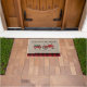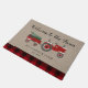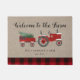 Boerderij Red Plaid Gepersonaliseerde Monogrammed Doormat - een landelijke welkomstmat met een rode antiek boerderijen tractor met een vers gesneden kerstboom en cadeau. Script typografie leest - Welkom in het Boerderij en is gepersonaliseerd met familienaam en jaar vastgesteld.