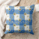 Retro trendy boerderijstijl roulerend land gooit kussen met een waterverf zonnebloempatroon verspreid over een trendy blauwe en witte gingham plaid background. +++++++Eenvoudig om met uw familienaam en monogram initiaal te personaliseren. ++++++++++ het Overeenkomende producten beschikbaar in het collectie.