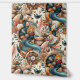 Natuur-geïnspireerde, vrijgevochten, illustratieve olieverfschilderij in Boheemse stijl is voorzien van bloemen en een mix van patronen en texturen op een crème, mosterdgeel, blauwgroen en magenta achtergrond, ideaal voor elk feest en decor geschenken.