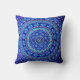 Blauw boheems stijl kussen met olifantencirkels erop.