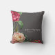 Een mooi kussen met een donkergrijze achtergrond en een herhaald botanisch plum en een roze geverfd bloempatroon. Gepersonaliseerd met je namen en/of datum, zou het een perfect cadeau zijn voor een jubileum of bruiloft. Zie voor meer kussens de Knots & Kisses Shop.