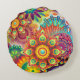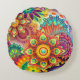 Boheemse abstracte bloemprintkussen. In kleuren blauw, roze, oranje, groen, blauw, geel en paars.