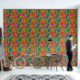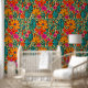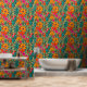 Plak en schil behang met een boho vibe in blauw, sinaasappel en roze. Bloemen behang om uw kamer een diep levendig gevoel te geven.