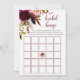 Deze trendy bingo-spelkaart voor de bruids-shower heeft mooie waterverf bloemen in levendige tinten marsala, wijn, diep groen, rood en paars, en bijpassende moderne typografie.