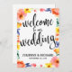 Een elegant, modern bruiloftsbord met de tekst 'Welkom op onze bruiloft' in een uitbundig schrifttype. De borstelstructuur geeft een spontane en speelse sfeer. De achtergrondkleur kan worden aangepast aan uw behoeften en voorkeuren. Neem contact met me op als u speciale wensen heeft.