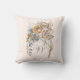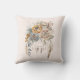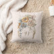Een kussen met een bloemenboeket in neutrale kleuren bruin, perzik en sinaasappel. Een gevederde dromenvanger voegt een elegante mystieke flair toe.
