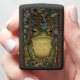 Deze elegante Boheemse illustratie toont een charmante boskikker genesteld te midden van een weelderige en betoverende bosscène. De kikker, weergegeven in prachtig detail, is omgeven door een scala aan levendige bloemen, delicaat gebladerte en rijk groen, allemaal prachtig verweven. De art nouveau stijl is duidelijk zichtbaar in de vloeiende, organische lijnen en ingewikkelde patronen die de flora en fauna definiëren. De achtergrond heeft elegante, bochtige rondingen en gestileerde natuurlijke vormen, waardoor een harmonieuze en grillige sfeer wordt gecreëerd. Dit fascinerende kunstwerk combineert de natuurlijke schoonheid van het bos met de sierlijke, decoratieve elementen van art nouveau, wat resulteert in een visueel verbluffende en serene compositie.