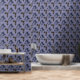 Boho Botanical Flower Pattern Blue Behang