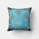 Boho chique gooi kussen --Blauw en zwart damast patroon met overlay.