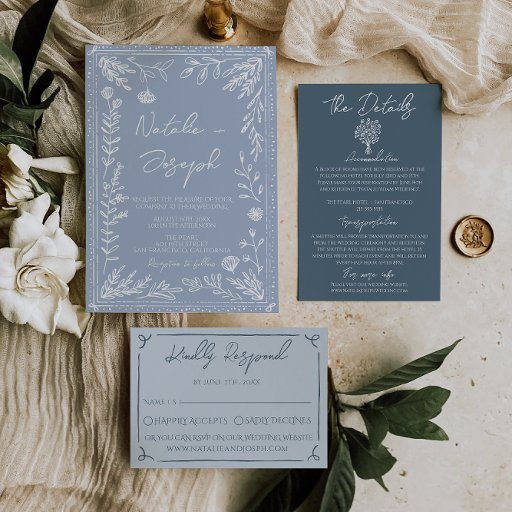 Azure Blue Hand Drawn Wedding Floral SuiteConçu par marouane boukouyen
