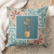 Hier is een worp met decoratieve tegels in kleuren van kaki, blauwgroen, en roest met een centrale tegel die bloem in een vaas bevat. Hetzelfde ontwerp staat zowel aan de voor- als aan de achterzijde. U kiest uw grootte en stof voordat u deze in uw winkelwagentje plaatst.