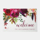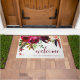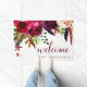 Deze trendy doormat kenmerkt waterverf bloemen in levendige tinten van marsala, wijn, diep groen, rood en paars, en de aanpassing van moderne typografie.
